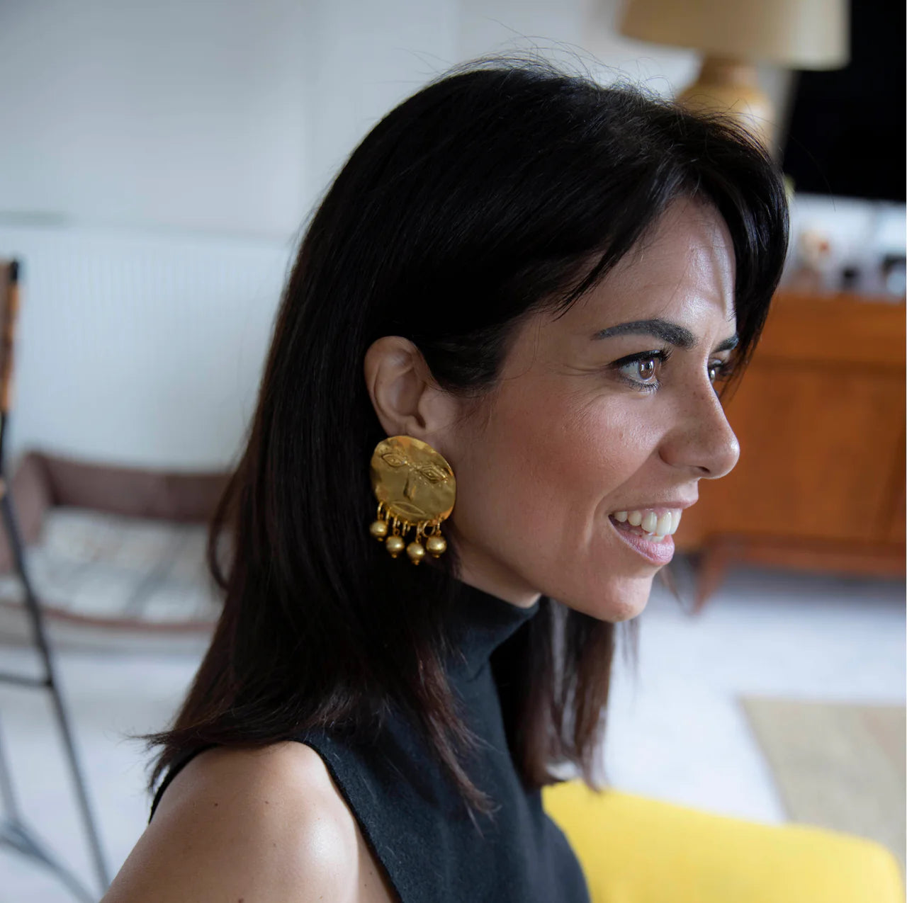 Réalisées en laiton plaqué or, elles se portent comme des pièces affirmées, entre jeu graphique et présence assumée.