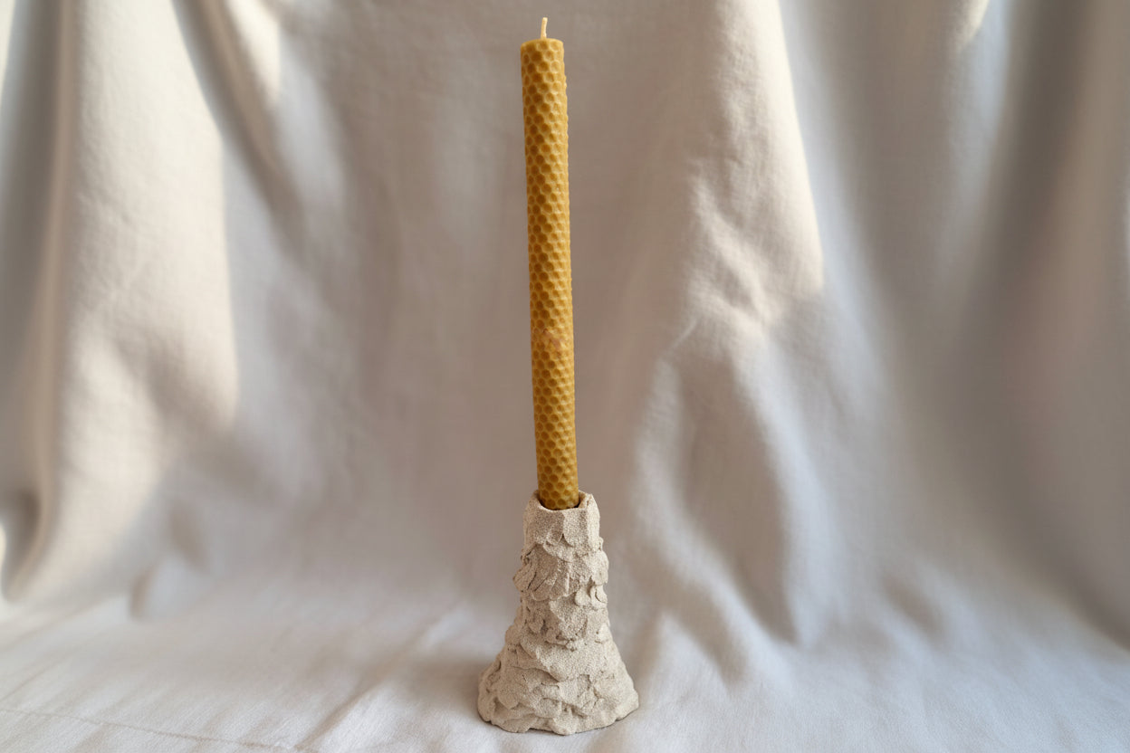 Bougeoir en grès blanc, façonné à la main en Espagne par l’artiste Astérisque.