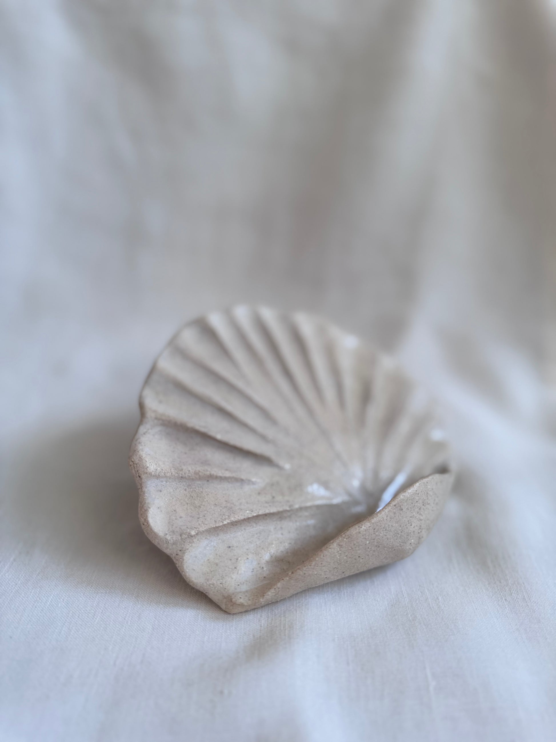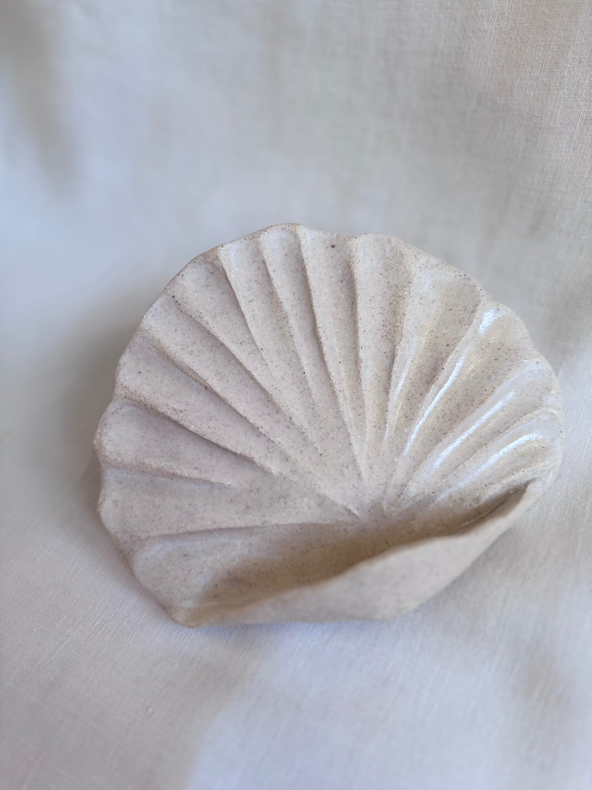 Façonné à la main au Portugal par Ayala Braidman, ce coquillage en grès blanc émaillé évoque une forme organique, entre désert et rivage.