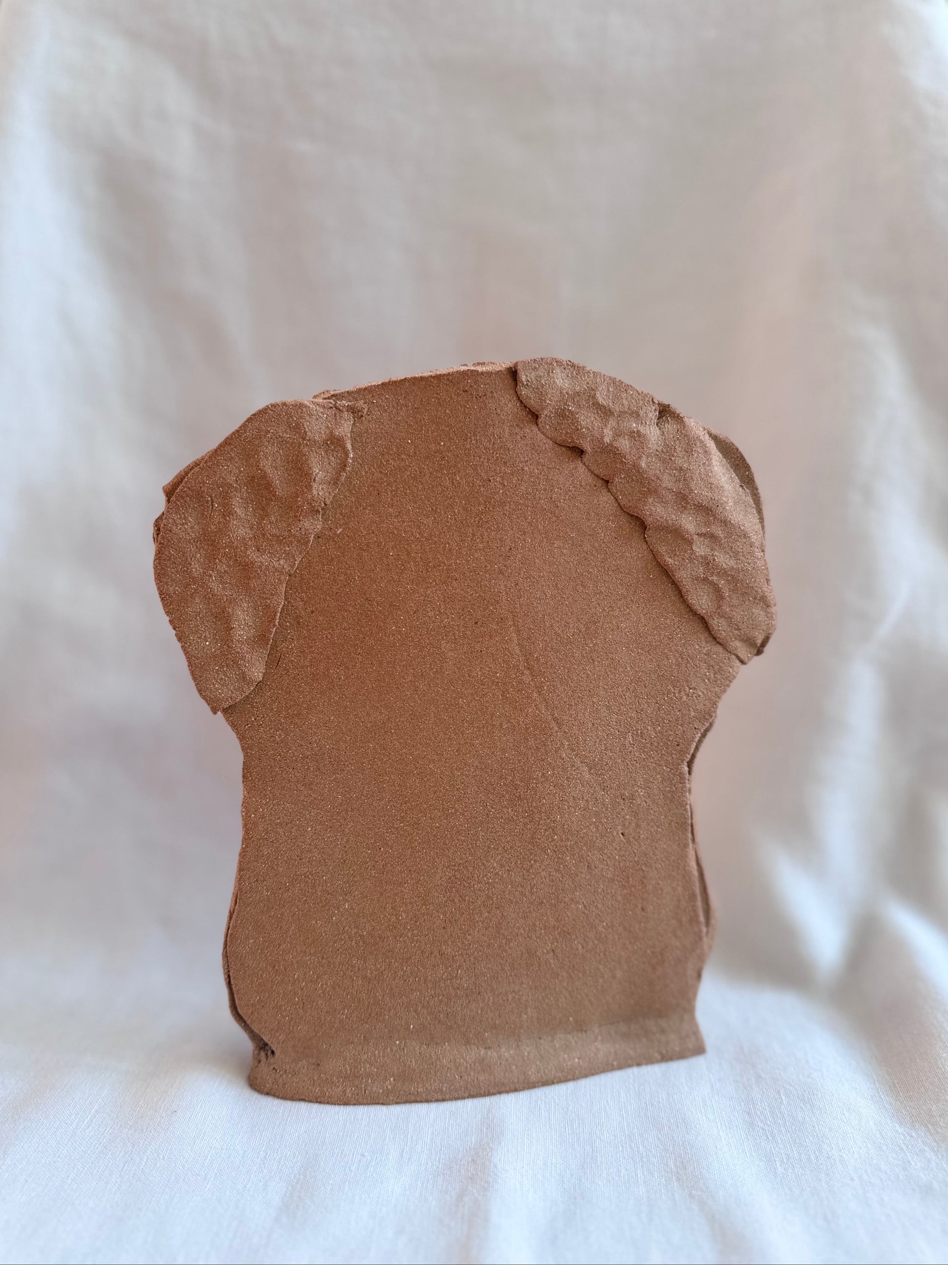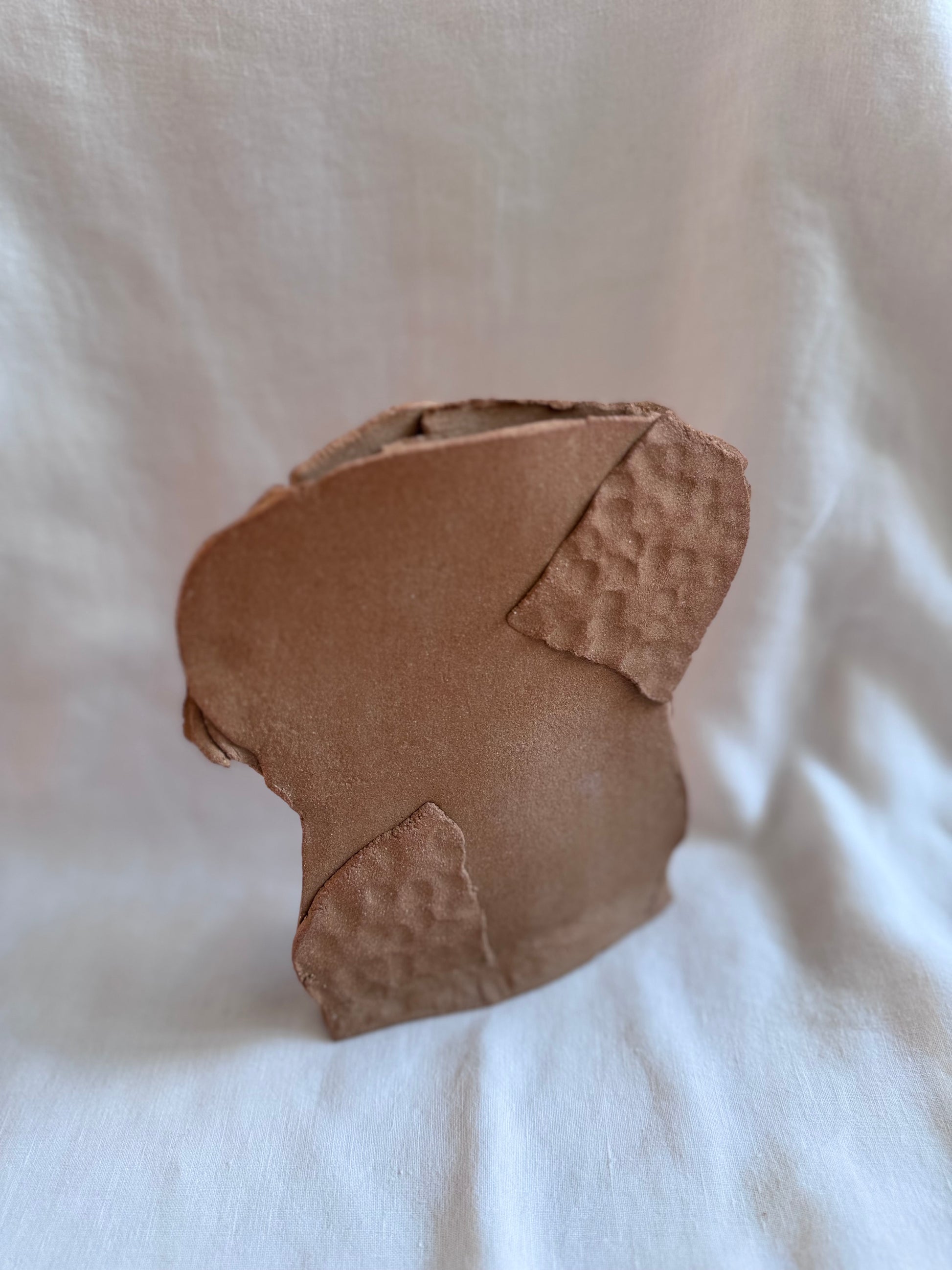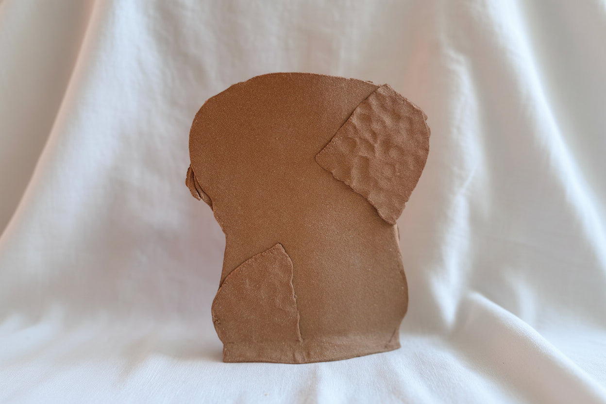 Sa forme pleine en fait un volume fort à la frontière de l'objet et de la sculpture. Non étanche, il est pensé pour accueillir quelques fleurs séchées ou s’exposer seul, comme un objet à part entière.